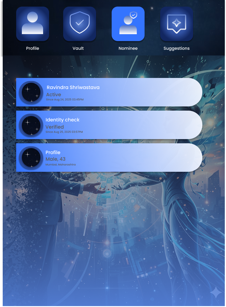 Life is unpredictable, but your legacy doesn’t have to be. With Legacy Setu, you can securely store your memories, documents, health records, even last wishes — and ensure it reaches your chosen nominee when you’re no longer around.